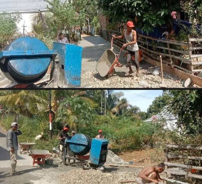 Disaat tim awak media pengecekan lapangan dan langsung menanyakan ke salah satu tukang dilapangan,terkait kegiatan jalan rabat beton yang di bangun ada 3 titik, panjang 23,23 dan 25 total panjang 71, lebar 3 meter dan tebal 15 cm,volume 31,95 m3( meter kubik,”Red),”ujar tukang,