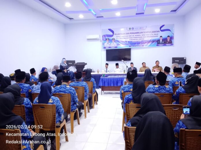 Infoberitanasional.com -Lebong- Sebanyak 83 kepala sekolah jenjang SD, SMP,KORWIL,SPNF dan TK/Paud dilingkungan Pemkab Lebong dilantik. Pelantikan tersebut dipimpin langsung oleh kepala Dinas Pendidikan dan kebudayaan kabupaten Lebong Fakhrurrozi S.sos ,M.s.i ,bertempat di Aula dinas Pendidikan dan Kebudayaan kabupaten Lebong, pada Selasa 24/02/2026.