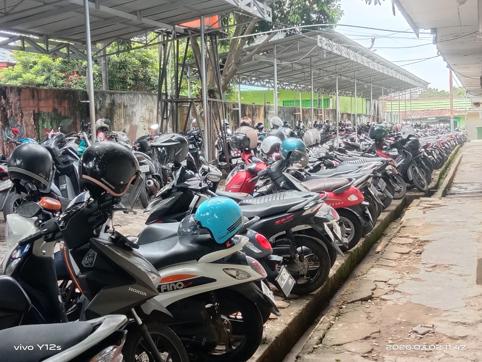 Pasalnya,”berdasarkan pantauan awak media Pada Senin,(2/3/2026),di lapangan dan menemukan ratusan motor siswa terparkir di area didalam halaman sekolah, hal ini menunjukkan bahwa banyak pelajar yang masih nekat membawa motor ke sekolah, meskipun sudah ada larangan, Berdasarkan pengamatan, motor-motor tersebut terparkir rapi di halaman sekolah,dengan beberapa di antaranya di depan ruangan belajar bahkan hampir di setiap lokasi di halaman di dalam sekolah bahkan terlihat portal terkunci.